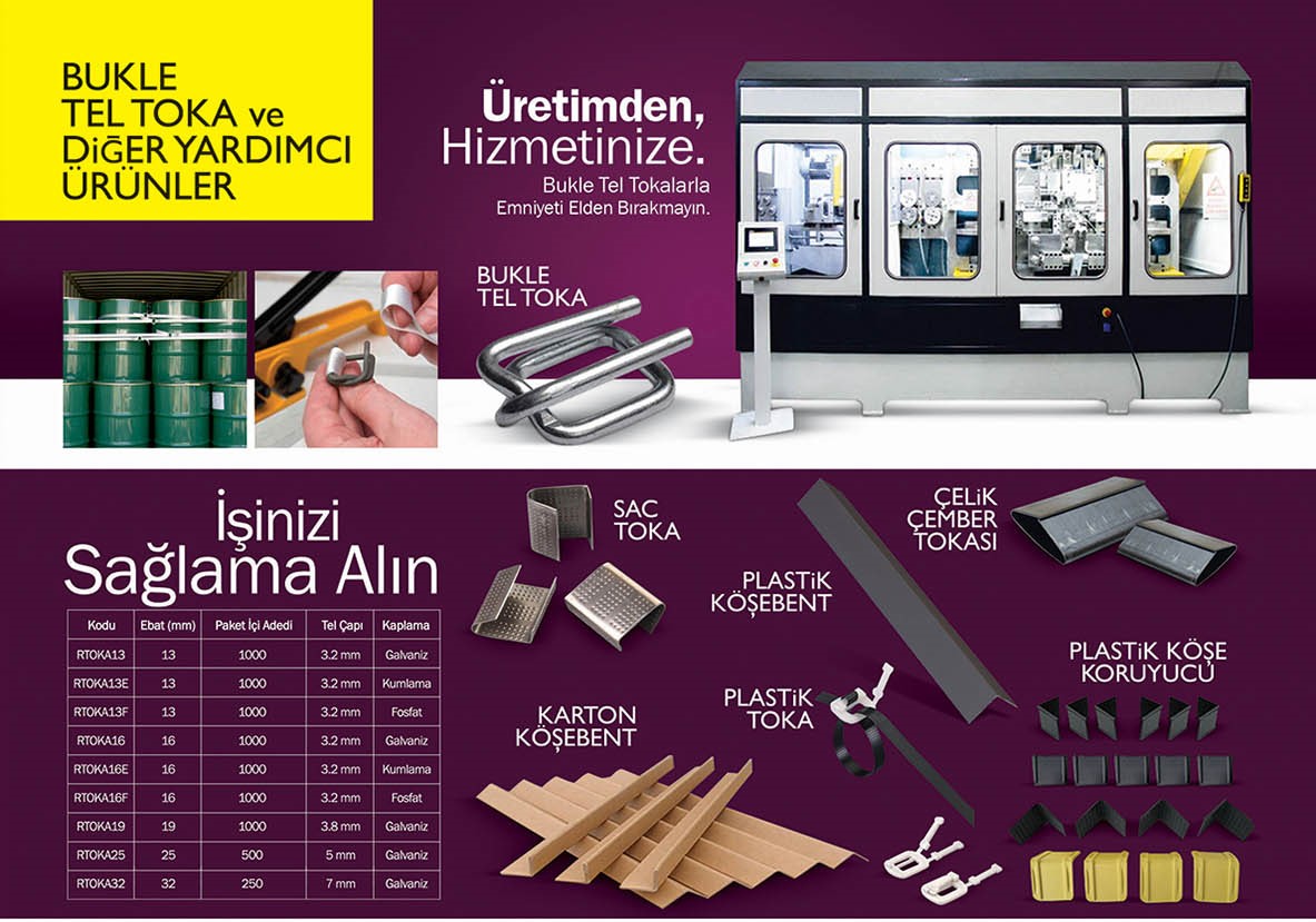 Kompozit lifli ve Polyester çemberleri tokalama da kullanılır.