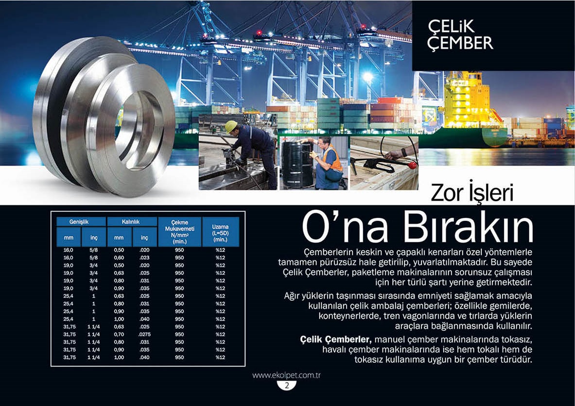 Bu sayede ÇELİK ÇEMBERLER , paketleme makinalarının sorunsuz çalışması için her türlü şartı yerine getirmektedir.