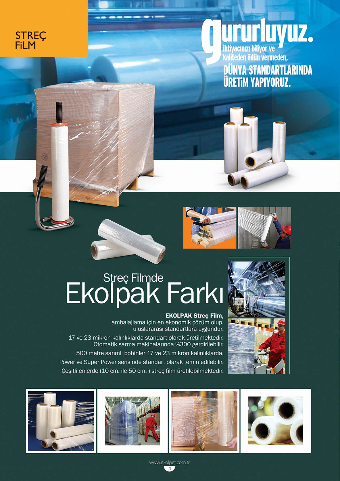 Strech filmler istenilen ebat ve uzunlukta üretilir.